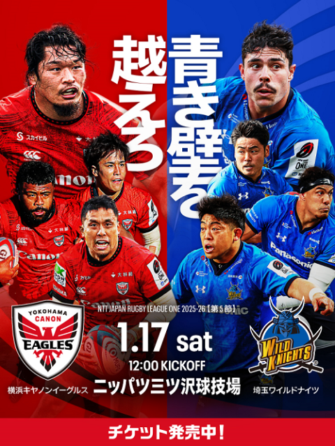 1/17(土)、イーグルスはニッパツ三ツ沢球技場で埼玉パナソニックワイルドナイツと対戦!当日は女子選手権準決勝との併催となり、同じチケットで2試合観戦できます。