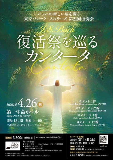 古楽器アンサンブルと小人数声楽アンサンブルによるバッハのカンタータ演奏会です。